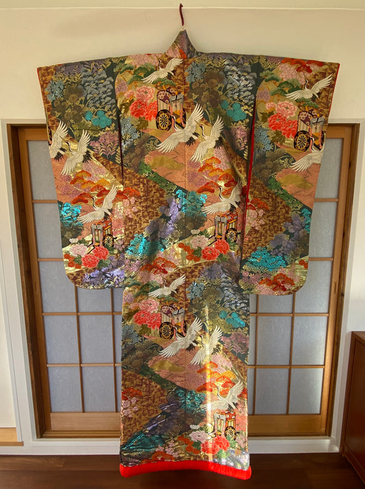 [USED]色打掛(御所車と四季の花)kimono/K20260126