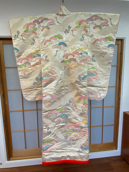 [USED]正絹 色打掛 (白地 鶴と松)kimono/K20260126