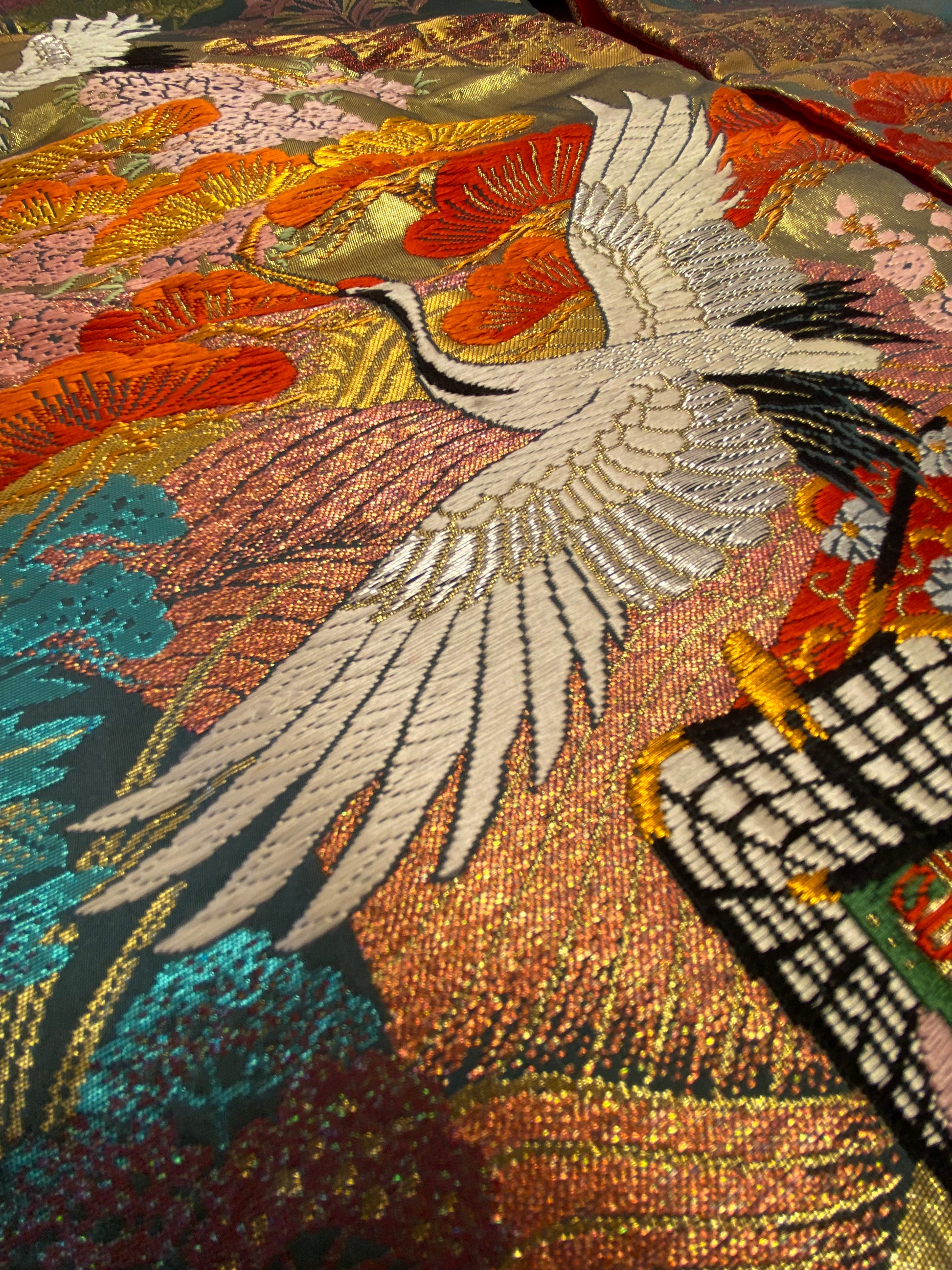 熟練の職人による緻密な刺繍と、贅沢に使用された金糸が織りなす輝きは、まさに「動く芸術品」と呼ぶにふさわしい逸品です。