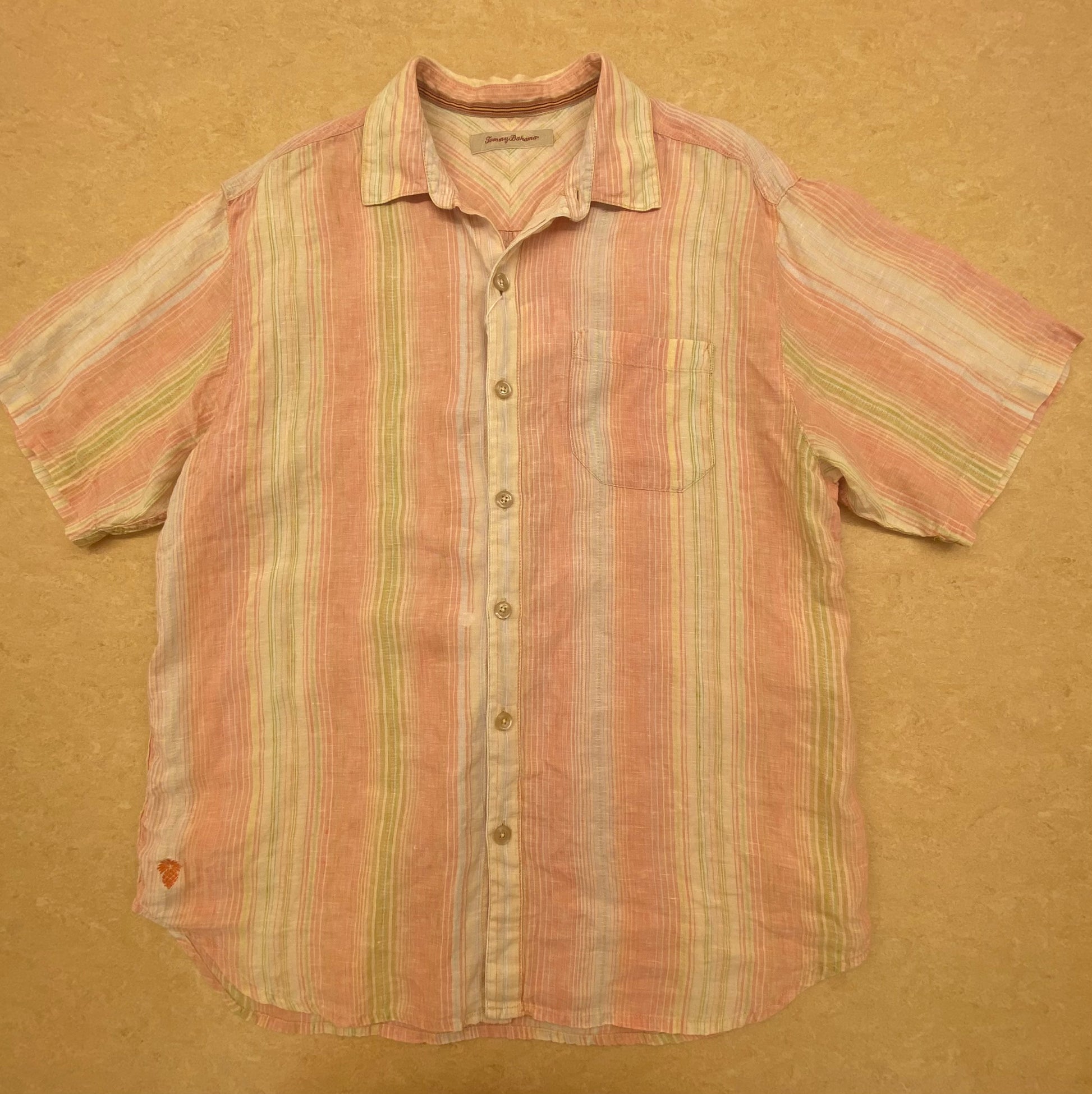 USED Aloha shirts are cool and comfortable Tommy Bahama aloha shirts direct from Hawaii, made of cotton linen. The airy material allows for comfortable wear in hot weather. USED products directly from Hawaii have a vintage look and feel, giving them a casual and stylish look.