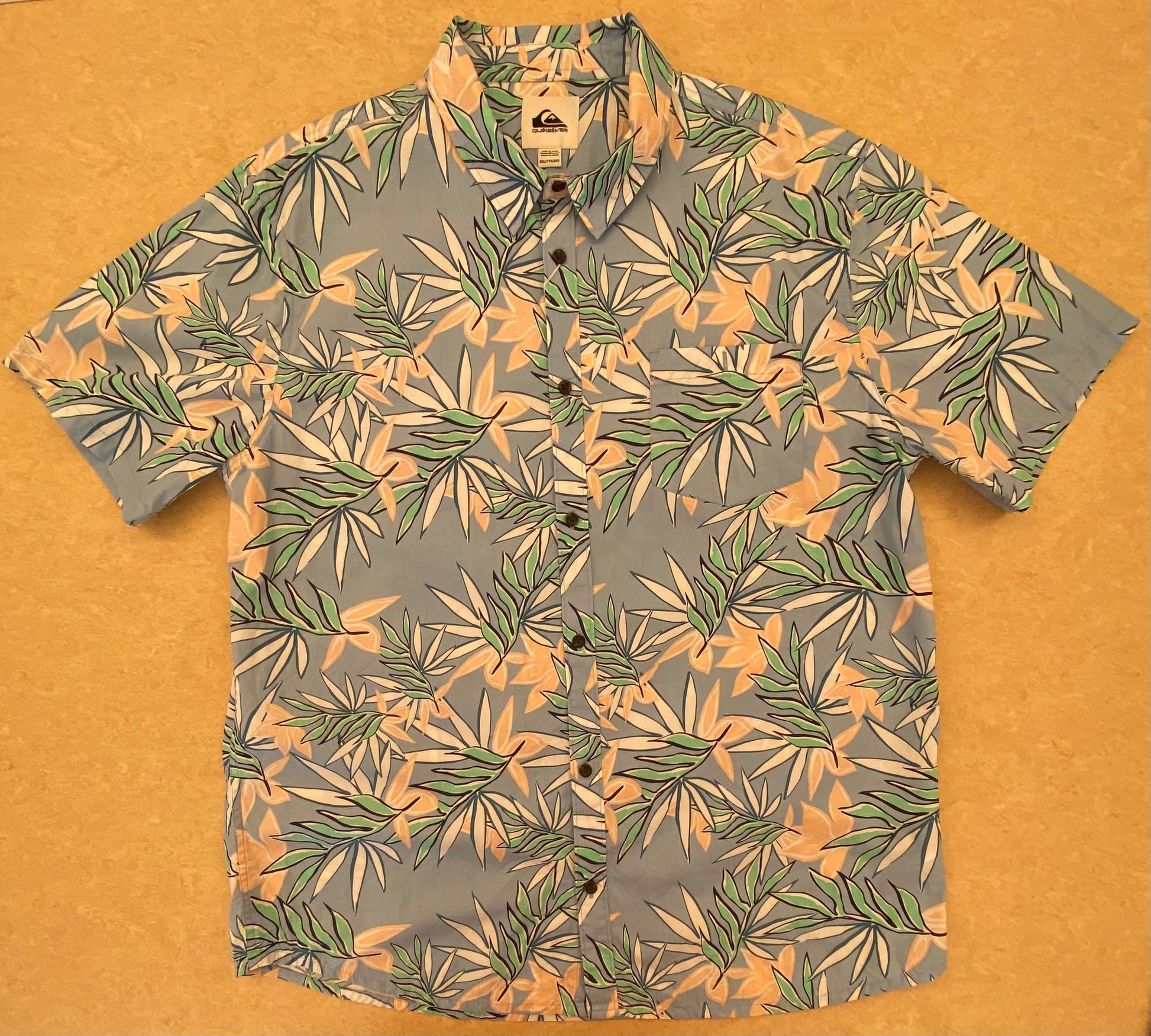 This USED Aloha shirt is a like-new 100% cotton Aloha shirt from Quiksilver HAWAII that has been used only once. You will enjoy its sophisticated design and comfortable fit. Recommended item. One item.