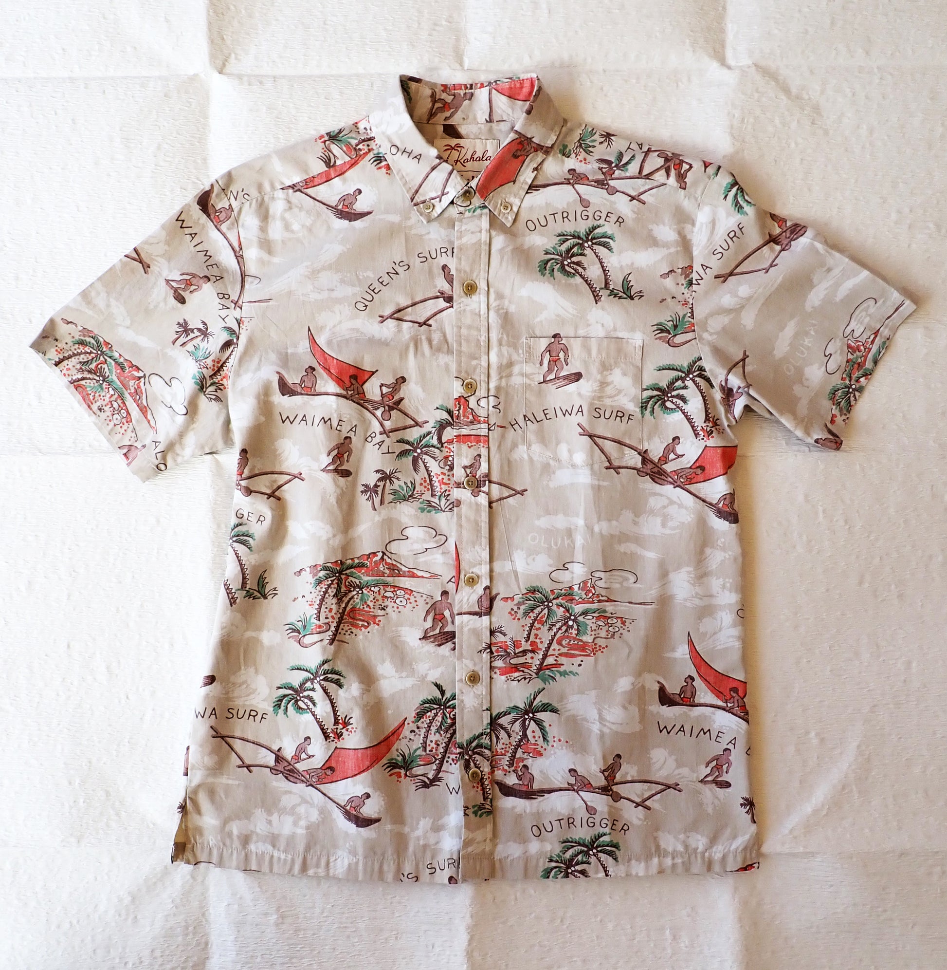 USEDアロハシャツはKahala( HAND CRAFTED IN HAWAI ) 綿100%で作られており、